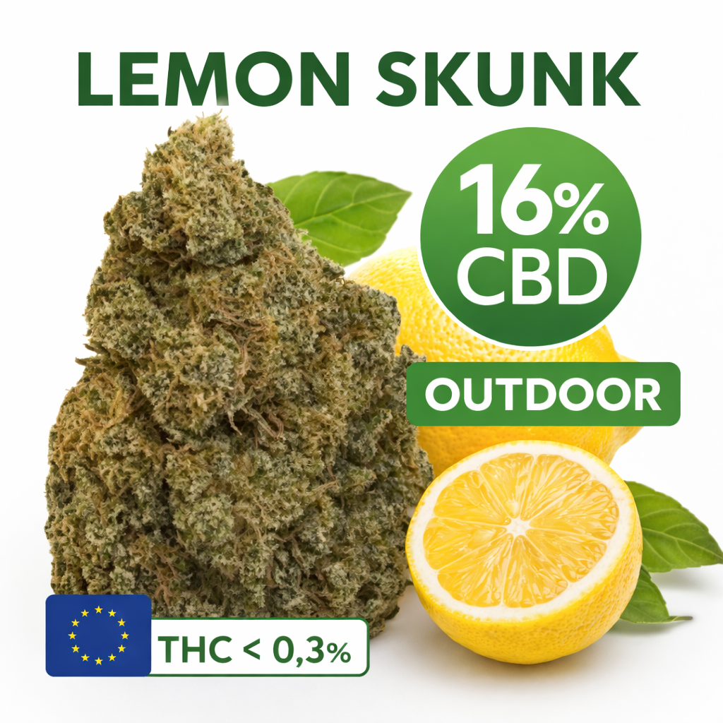 La Lemon Skunk 16% CBD est une fleur cultivée en extérieur qui séduit par son parfum vif et rafraîchissant. Grâce à une culture outdoor sous lumière naturelle, elle développe des arômes francs et une structure authentique.